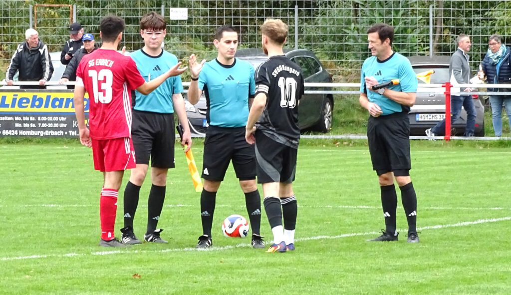 Vor 260 Zuschauern auf der „Eichheck“ setzte sich die SG Erbach im Spitzenspiel der Liga mit 4:1 gegen den Tabellenführer SVGG Hangard durch und sorgte damit für ein echtes Ausrufezeichen im Aufstiegsrennen. Die Gäste gingen in der 29. Minute durch Alex Oroszi in Führung – sein 23. Saisontreffer, vorbereitet von Francesco Nardi (sechste Vorlage). Doch Erbach drehte die Partie eindrucksvoll: In der 55. Minute glich Tim Klotsch mit seinem vierten Saisontreffer aus. Nur vier Minuten später traf Laurin Seichter zum 2:1 – sein siebter Saisontreffer. In der 74. Minute erhöhte erneut Tim Klotsch per Kopfball auf 3:1 – sein fünfter Saisontreffer, vorbereitet von Marc Meisinger (zweite Vorlage). Den Schlusspunkt setzte Klotsch in der 84. Minute mit seinem sechsten Saisontreffer zum 4:1-Endstand. Mit diesem Heimsieg zieht die SG Erbach mit 25 Punkten und einem Torverhältnis von 32:17 auf Rang 2 der Tabelle. Der SVGG Hangard bleibt trotz der Niederlage mit 26 Punkten und einem Torverhältnis von 47:23 Tabellenführer.
