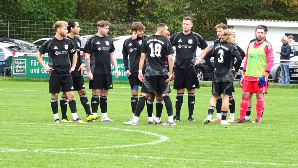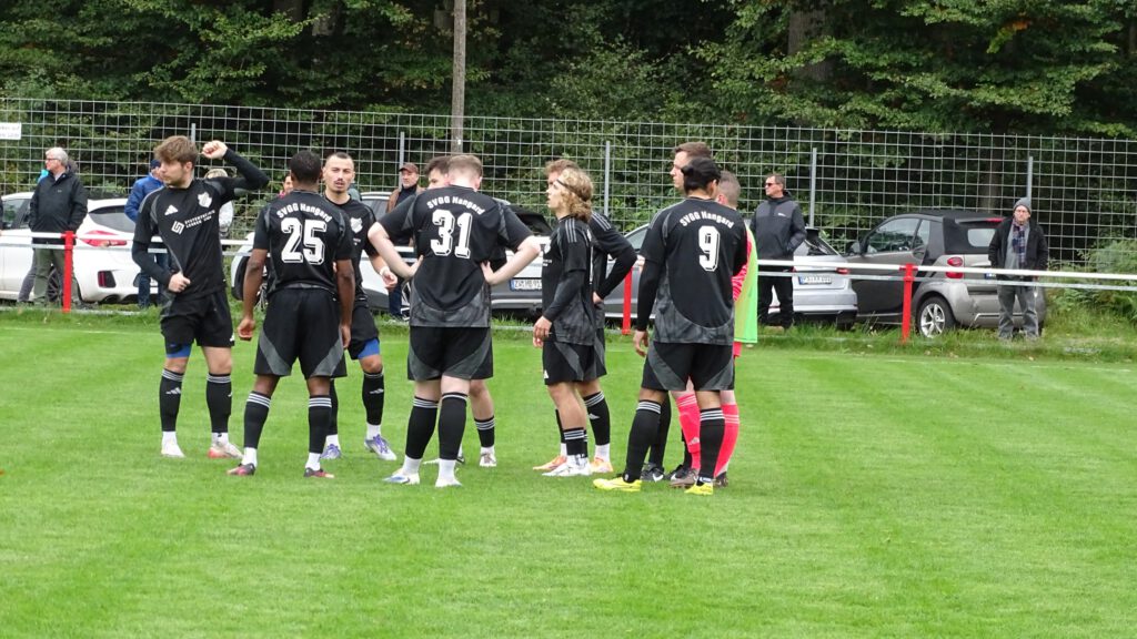 Kurzbericht: Irgendwann musste sie ja kommen, die erste Saison-Niederlage. Die SVGG Hangard musste im Spitzenspiel verletzungsbedingt auf Capitano Jonas Drenkow, Aaron Weigle, Hüssein Hammoud, David Hippchen und zunächst auch auf den angeschlagenen Marco Eggert verzichten. So musste auch Eloy Michel Campos Alcántara ohne Training reaktiviert werden, um die Startelf zu komplettieren. Im ersten Spielabschnitt hatte unsere SVGG ein leichtes Übergewicht, konnte durch Alex Oroszi nach herrlichem Pass von Francesco Nardi mit einem wunderschönen die 1:0-Führung (29.) mit einem Heber erzielen. In der Folge waren weitere gute Chancen herausgespielt, in ein paar Fällen fehlte einfach nur „der letzte gute Pass“, siehe auch Titelfoto. Auch eine höhere Halbzeitführung lag im Bereich des Mögliche. Obwohl der Gastgeber sich in Abschnitt 1 auch seine Torgelegenheiten erarbeitete. Ersatzkeeper Leon Reidenbach, der eine gute Partie spielte, stand des Öfteren im Mittelpunkt.