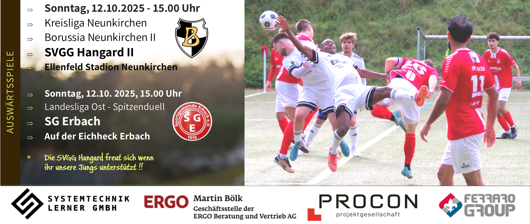 Spitzenfußball an der Eichheck: An diesem Sonntag um 15 Uhr gastiert unsere SVGG Hangard als Tabellenführer beim Tabellenzweiten SG Erbach in der Fußball-Landesliga. Die SVGG Hangard führt mit 26 Punkten die Tabelle an. Vier Punkte dahinter hat sich die SG Erbach mit 22 Punkten platziert und liegen somit 4 Punkte hinter der SVGG. In der […]