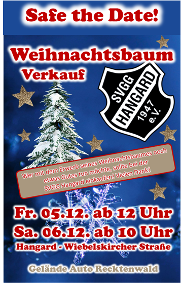 Zu einer langen Tradition ist er schon längst geworden. Bereits zum 11. Mal findet der große Weihnachtsbaumverkauf der SVGG Hangard statt. Netterweise stellt das Autohaus Recktenwald sein Gelände für diesen Event zu Verfügung. Das Team um „Tannenkönigin“ Tanja Losert-Schmitt hat sich wieder ins Zeug gelegt um mehr als 100 wunderschöne Weihnachtsbäume zur Auswahl zu stellen. Ein kostenloser Bringservice ist über die zwei Verkaufstage auch im Einsatz.