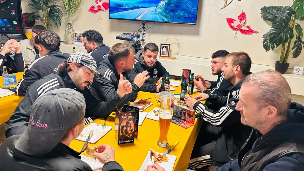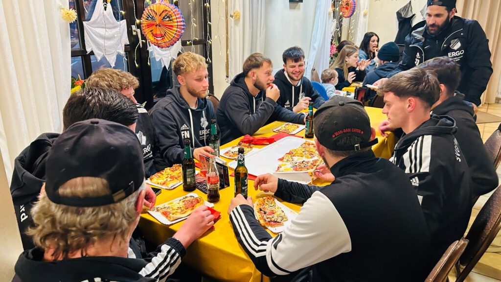 Auf Initiative von Thomas Müller konnten sich beide Mannschaften nach den Niederlagen in Erbach und bei Borussia auf einen schönen, zwanglosen Pizza-Abend in Gasthaus „Zum Knappen“ freuen. Wir danken allen Aktiven die der Einladung gefolgt sind. Danke auch an das Team von „Pizza Da Enzo“: Elke, Enzo, Lina und Franco. Ihr habt das gut gemacht!